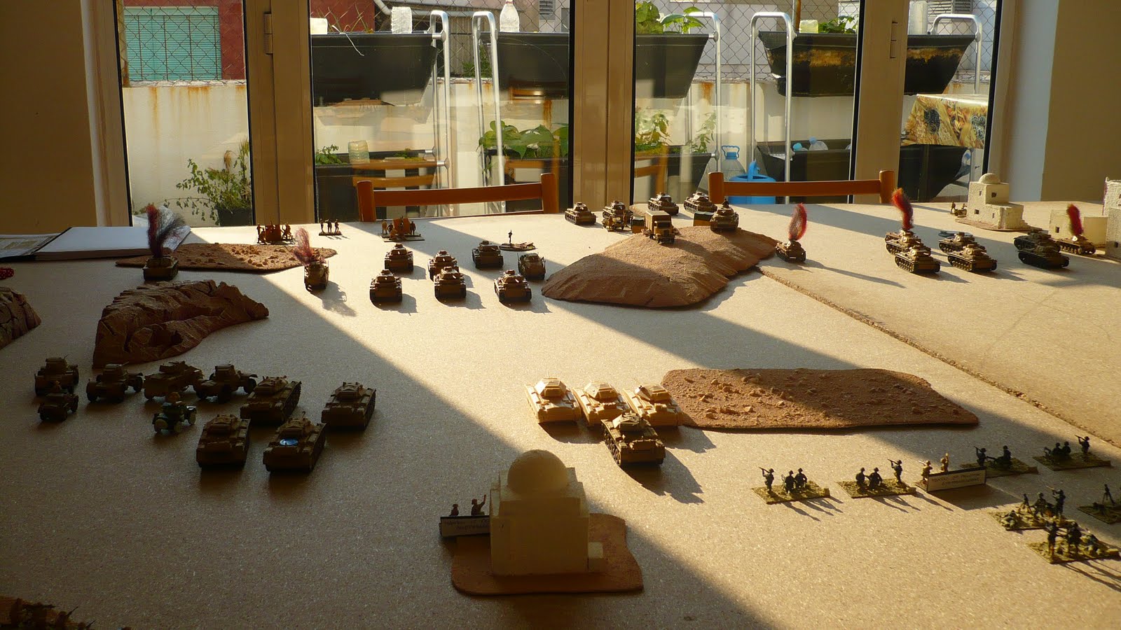 Esta partida de Flames of War, fue algo peculiar ya que un compañero del Club y yo intercambiamos los papeles, me explico. Normalmente yo suelo jugar con elementos de 15ª Panzer Division o con tropas de la 64 Ligera Alemana en África. Mientras que Salva, suele jugar con tropas titánicas. Para esta partida yo jugué con los británicos y Salva con mis Alemanes.